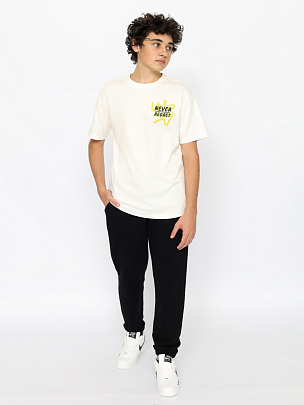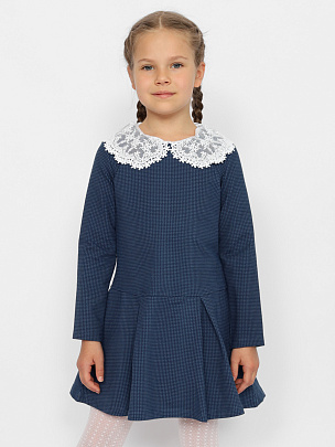 Джемпер для девочки из трикотажа. Рукав-фонарик со сборкой вверху и окантовкой внизу. Модель с короткими рукавами. Горловина окантована. Рукава и бантик из кружева. Сзади застежка на пуговицу.