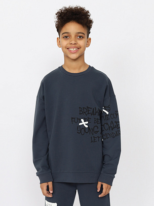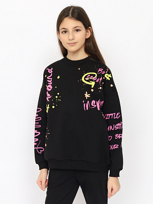 Стильный костюм оверсайз (свободный крой) состоит из 2-х предметов: укороченный свитшот и брюки-палаццо. Свитшот декорирован ярким объемным пафф-принтом "Свободный художник". Брюки-палаццо с завышенной талией и расклешенные снизу. Элементы костюма можно носить как самостоятельные вещи.