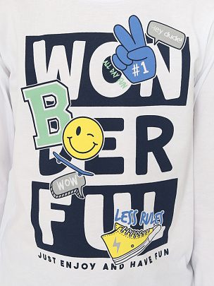 Джемпер с длинным втачным рукавом. Воротник из материала с добавлением эластана. Перед декорирован принтом.