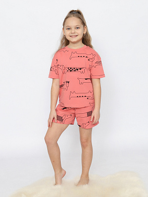 Пижама для девочки (футболка, шорты) коралловая