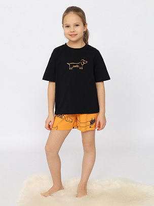 Пижама для девочки (футболка, шорты) черная