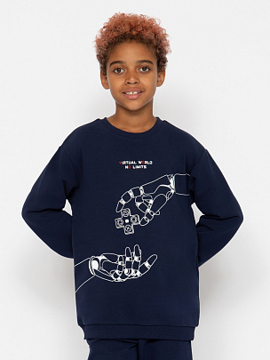 Джемпер для мальчика из кулирки повышенной плотности. Перед из двух частей контрастного цвета, декорирован принтом.