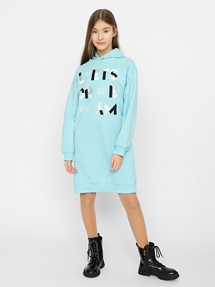 Платье для девочки из футера. Изделие с длинными рукавами, отложным съемным воротником из кружева. Отрезное чуть ниже линии талии. Сзади застегивается на пуговку. Декорировано бантиком.