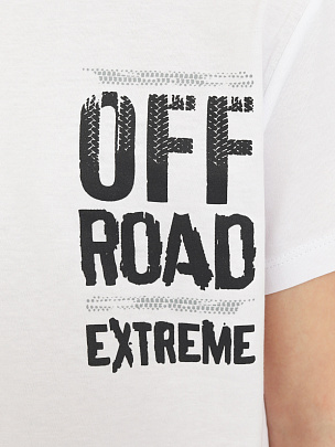 Футболка с коротким рукавом. Горловина круглая, обработана узким воротником из полотна с эластаном. Перед оформлен небольшим принтом.