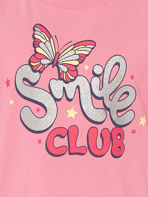 Футболка с коротким рукавом. Горловина круглая, обработана узким воротником из полотна с эластаном. Перед оформлен принтом с использованием краски с эффуктом "металлик".